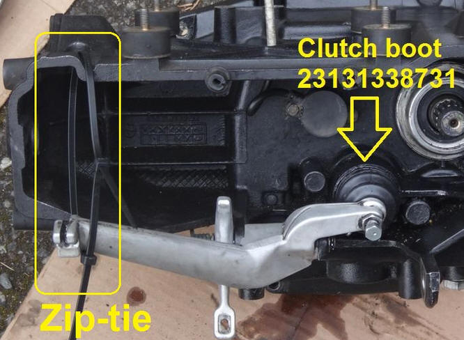zip-ties (or string/wire) to keep the clutch arm from fully