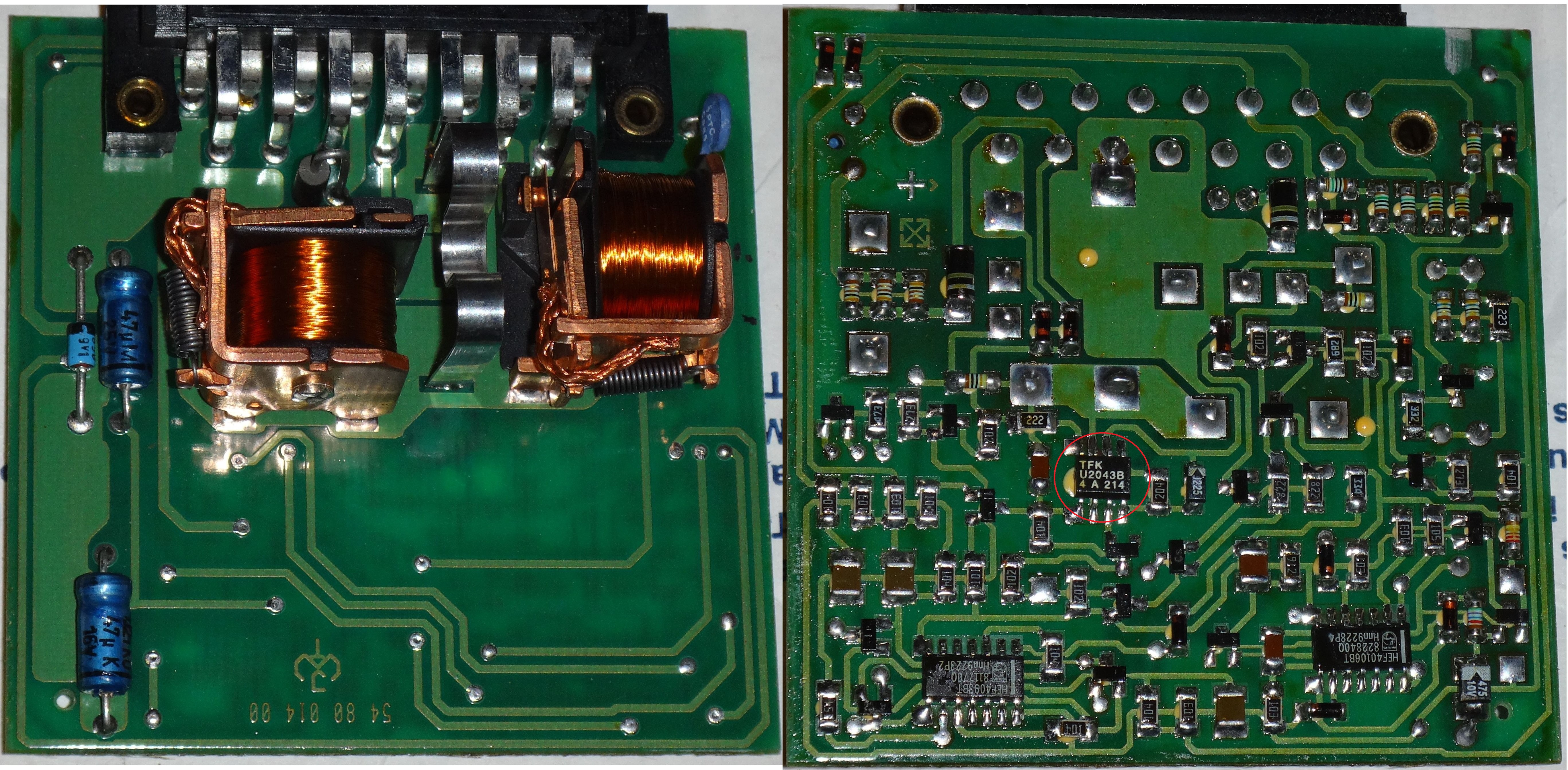 How I did it: For the green flasher relay I first pushed the U243B chip towards the 1-4 pins to make 5-8 more exposed. Then I used a small screwdriver to pry Pin 7 up out of the circuit board and bend it out. I then used some small diagonal cutters to cut off Pin 7.