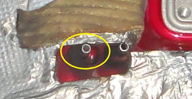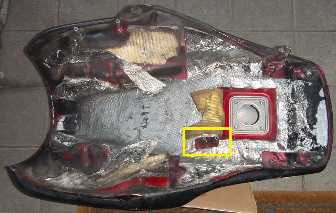 This is where water drains from around the gas cap when it's raining. It drains to the rear pipe.