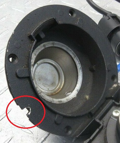 With the gas cap open you will see a notch in the left side of the perimeter.