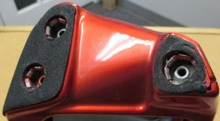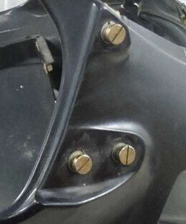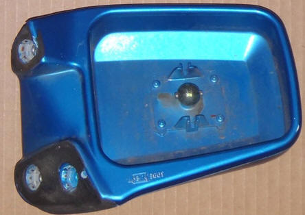 Note that the RT/LT mirror glass is slightly convex so having replacement mirror glass cut at a glass shop and replacing the RT/LT mirror glass with flat mirror glass isn't a great idea. Remove Mirror From Fairing: The RT/LT mirrors are made to break away and can be easily removed from the main fairing. Each side's mirror is mounted on three "pins." Here's what the right side mirror mounting pins look like: