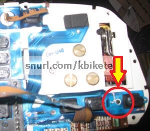 Locate calibration potentiometer: The arrow below shows location of the potentiometer that controls speedometer calibration.