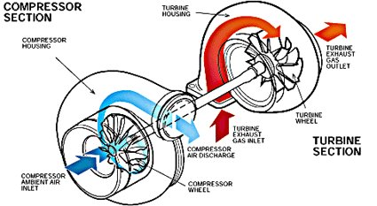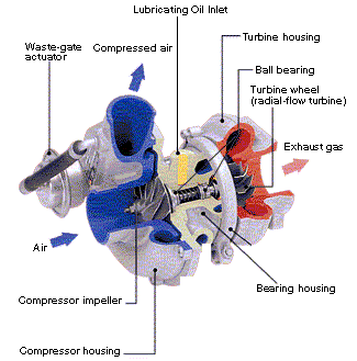 Turbo 101 I didn't know too much about turbos when I got this bike (still don't) so I studied up on them on The Internet and figured out what's what on this K75. I may update this section as I continue to learn more. Basic Concept: A turbo increases the air intake pressure by using the energy of the exhaust to spin a turbine which is connected by a shaft to a compressor wheel.