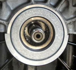 Clutch: The first thing to do with any K bike is to remove the final drive and transmission to inspect the clutch, check that the rear main seal isn't leaking, replace the clutch nut O-ring and lube the splines. When I got the clutch basket off I discovered that someone had been in there fairly recently to replace the rear main seal.