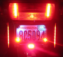 Brake Light Strobe: I added a brake light strobe and wired that up to the additional LED running lights I put in the sides of the brake/tail light lens as well as a Run-N-Lites Lite-Blazer below the license plate. It flashes 10 times and then goes solid. Here's an animated gif that simulates the brake light strobe: